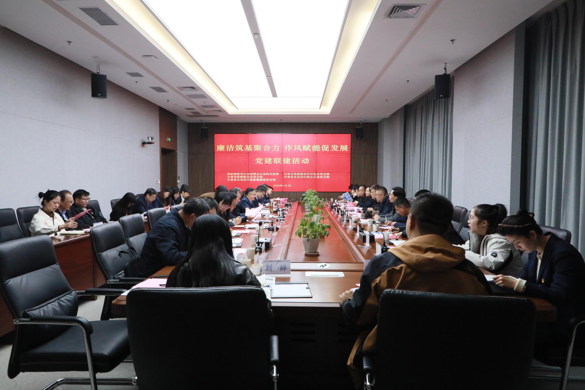10月20日,国家能源局甘肃监管办公室机关党委、甘肃自然能源研究所机关党支部、甘肃省新能源协会党支部、甘肃省水电设计院公司办公室党支部、甘肃省水电设计院新能源院党支部联合开展“廉洁筑基聚合力·作风赋能促发展”党建联建活动。