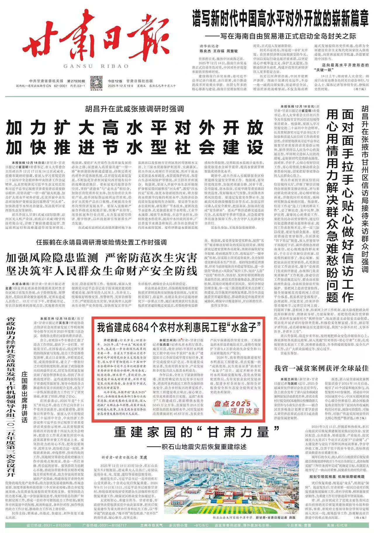 本报兰州讯(新甘肃·甘肃日报记者张燕茹)记者从省水利厅获悉,截至目前,我省2025年农村水利惠民工程中的684个农村“水盆子”建设项目已全面完成年度目标任务,累计完成投资6.27亿元,各项建设成效显著,为农村供水安全、产业发展和乡村振兴注入强劲水利动力。