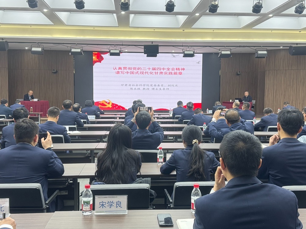 为深入学习贯彻党的二十届四中全会精神,切实把思想和行动统一到党中央决策部署上来,3月4日,公司特邀省社会科学院党委委员、副院长、省委学习贯彻党的二十届四中全会精神专家学者宣讲团成员陈永胜教授以“认真贯彻党的二十届四中全会精神以水利高质量发展服务中国式现代化甘肃实践”为题,开展专题宣讲。
