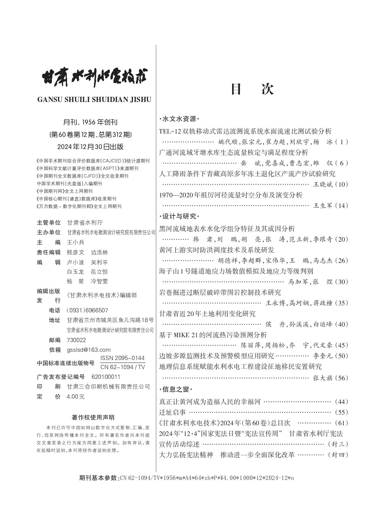 《甘肃水利水电技术》2024年第12期