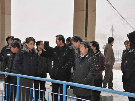 2月18日,我省普降大雪,为干渴的陇原大地送来了甘霖。上午8:00院长王志强、副院长卢学礼一行18人顶风冒雪,不畏严寒,和省引大工程管理局副局长周瑾成、杨荃熙、万国庆一行,前往引大工程渠首、总干渠等进行了现场踏勘。王志强一行从引大工程渠首沿着总干渠线路一直到香炉山总分水闸,重点对引大工程渠首改造、总干渠部分明渠、盘道岭隧洞、渡槽、倒虹吸、连接段等进行了现场踏勘,了解渠道、隧洞等现状。19日,兰州新区供水工程项目组从总分水闸开始沿东一、二干渠进行了踏勘。20日上午,又对新建水库选址等进行了踏勘。